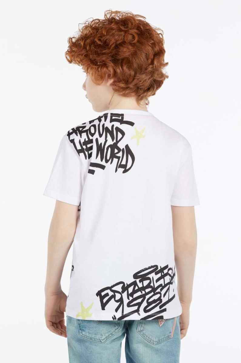 Дитяча бавовняна футболка Guess колір білий візерунок (2933928)