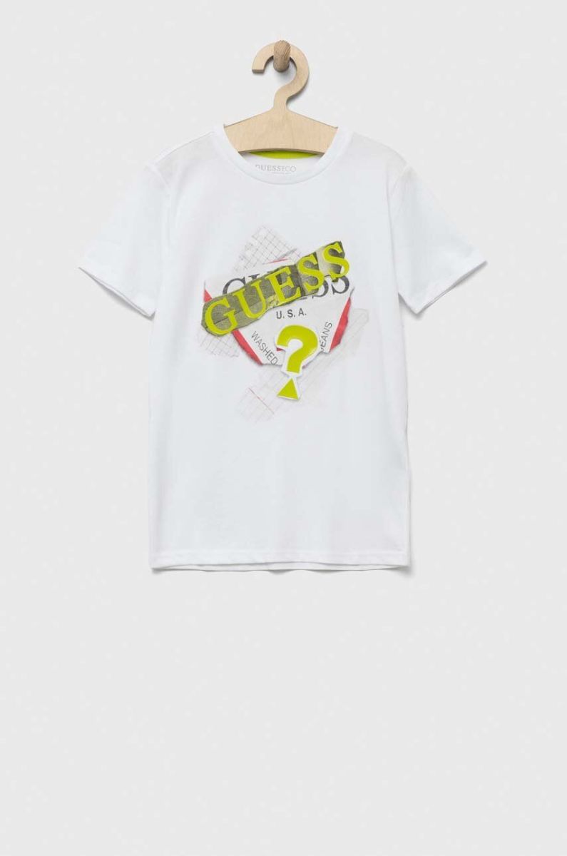 Дитяча бавовняна футболка Guess колір білий з принтом (3303120)