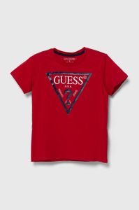 Дитяча бавовняна футболка Guess колір червоний з принтом (1536133)