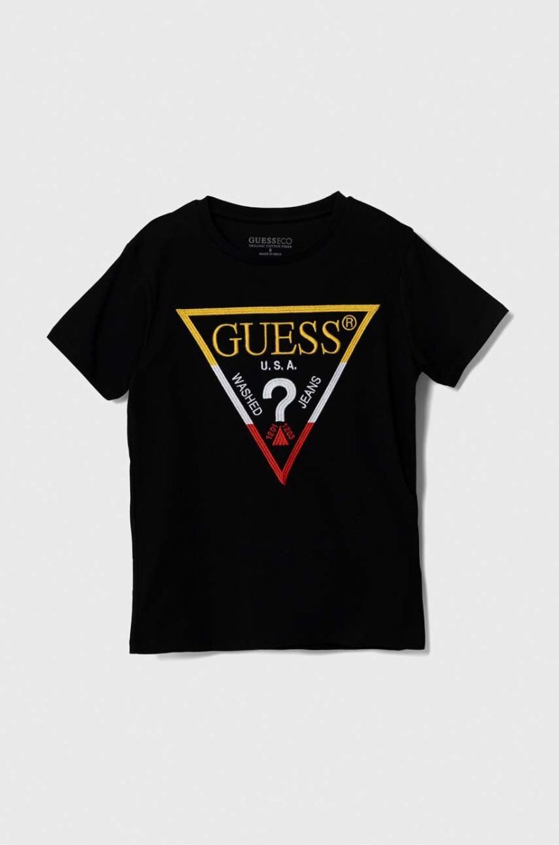 Дитяча бавовняна футболка Guess колір чорний з аплікацією (3366829)
