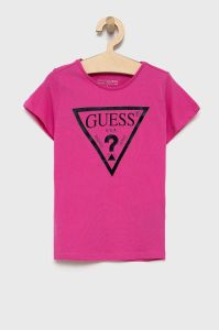 Дитяча бавовняна футболка Guess колір фіолетовий (1927667)