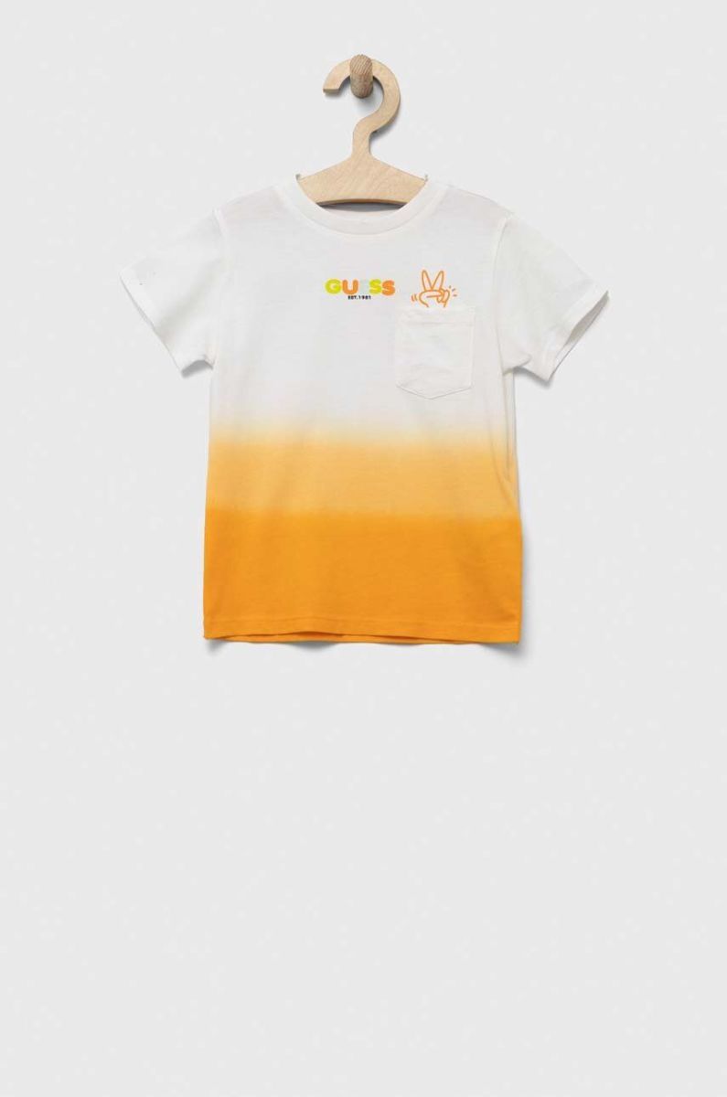 Дитяча бавовняна футболка Guess колір помаранчевий візерунок (3303139)