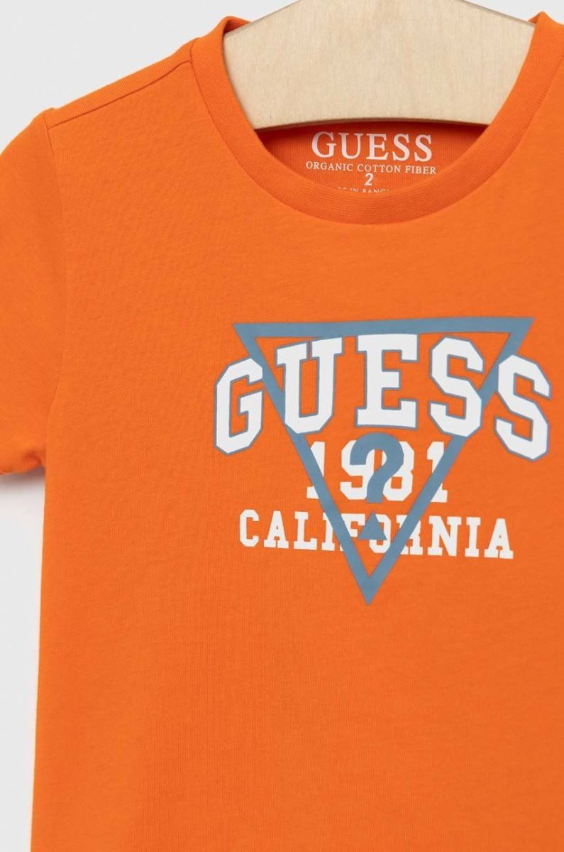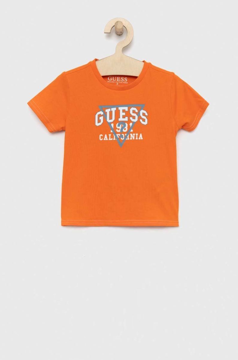 Дитяча бавовняна футболка Guess колір помаранчевий з принтом (2871381)