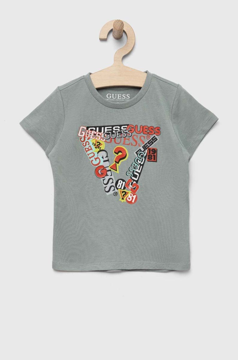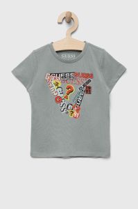 Дитяча бавовняна футболка Guess колір сірий з принтом (3328724)