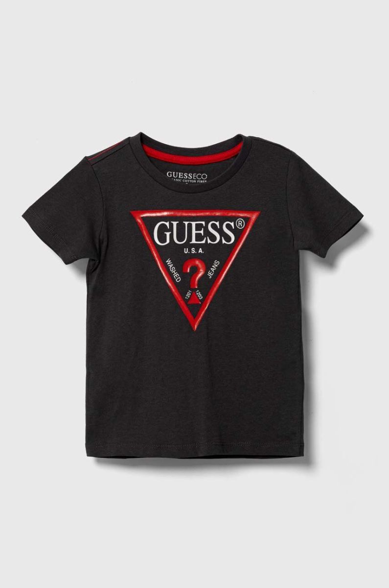 Дитяча бавовняна футболка Guess колір сірий з принтом (3366884)