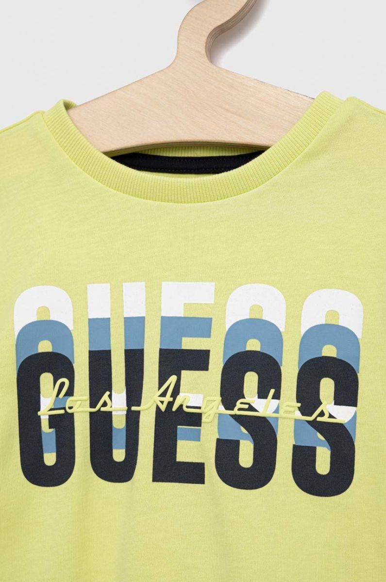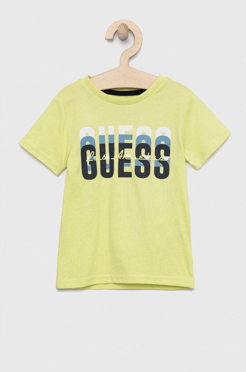 Дитяча бавовняна футболка Guess колір зелений з принтом (2871401)