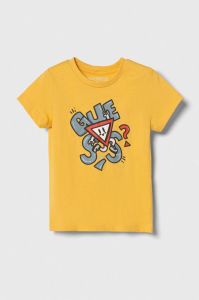 Дитяча бавовняна футболка Guess колір жовтий візерунок