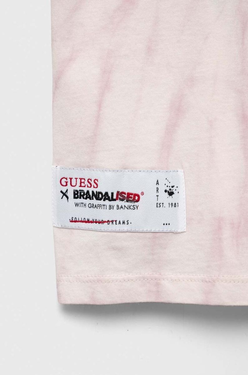 Дитяча бавовняна футболка Guess x Brandalised колір рожевий з принтом