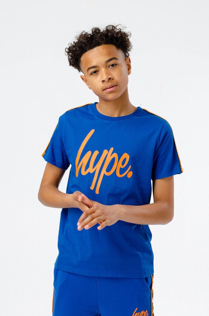 Дитяча бавовняна футболка Hype колір синій з принтом