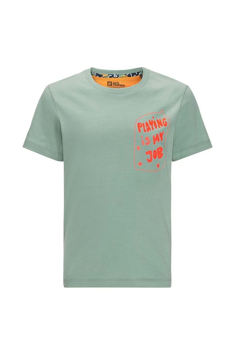 Дитяча бавовняна футболка Jack Wolfskin VILLI T K колір зелений візерунок