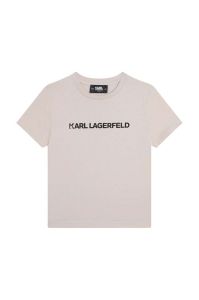 Дитяча бавовняна футболка Karl Lagerfeld колір бежевий з принтом (3072157)