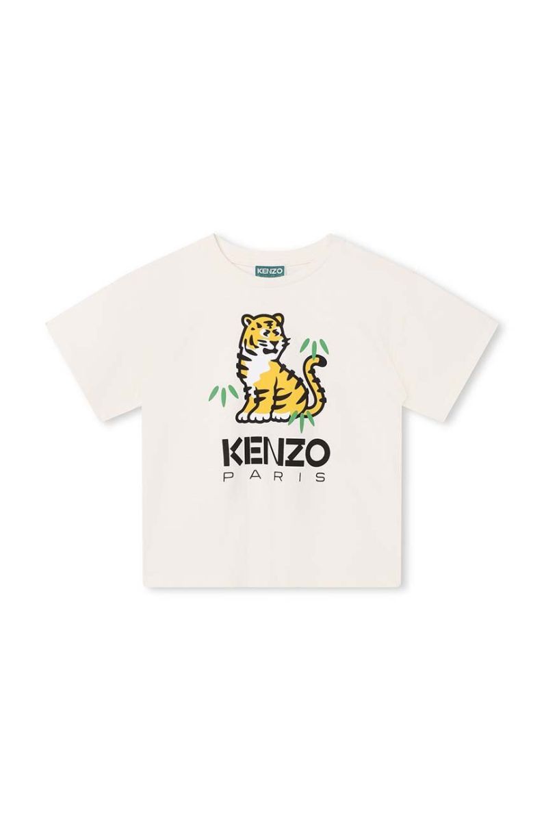 Дитяча бавовняна футболка Kenzo Kids колір бежевий з принтом (3405050)