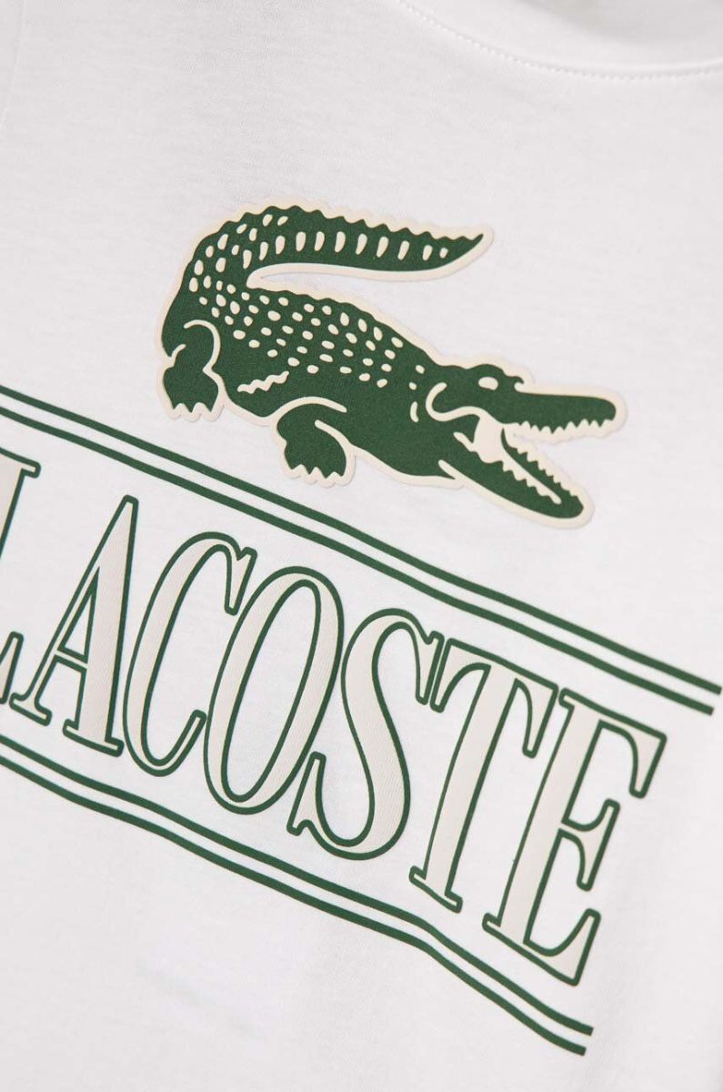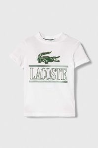 Дитяча бавовняна футболка Lacoste колір білий з принтом