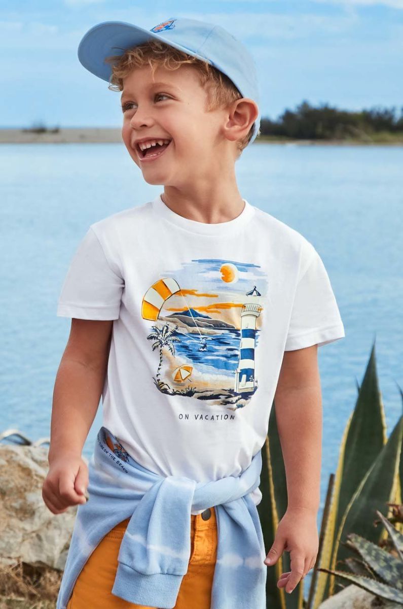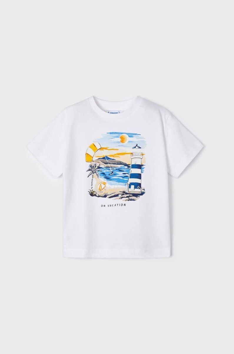 Дитяча бавовняна футболка Mayoral колір білий з принтом (2932470)