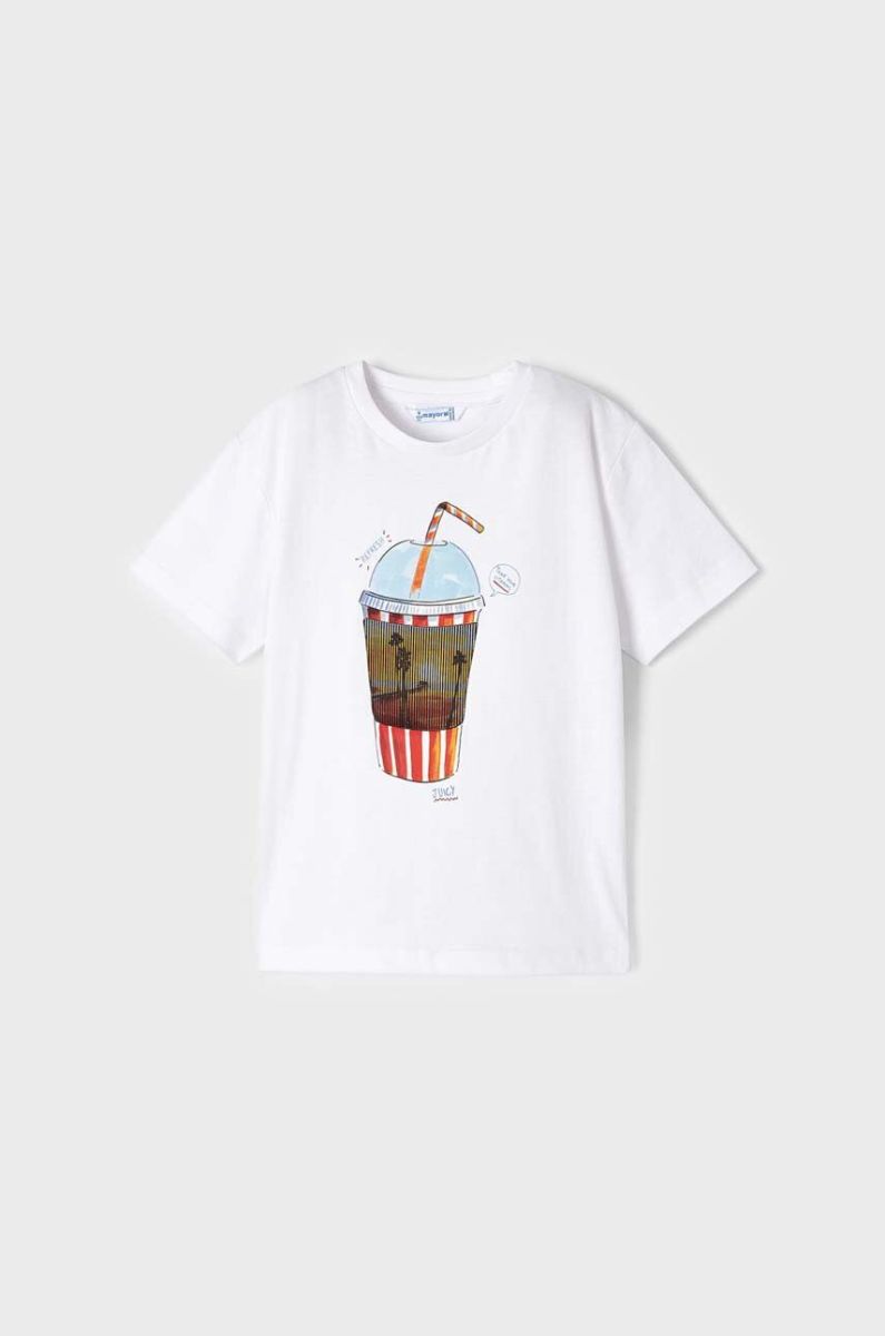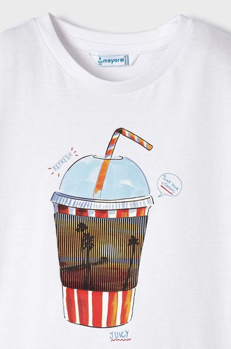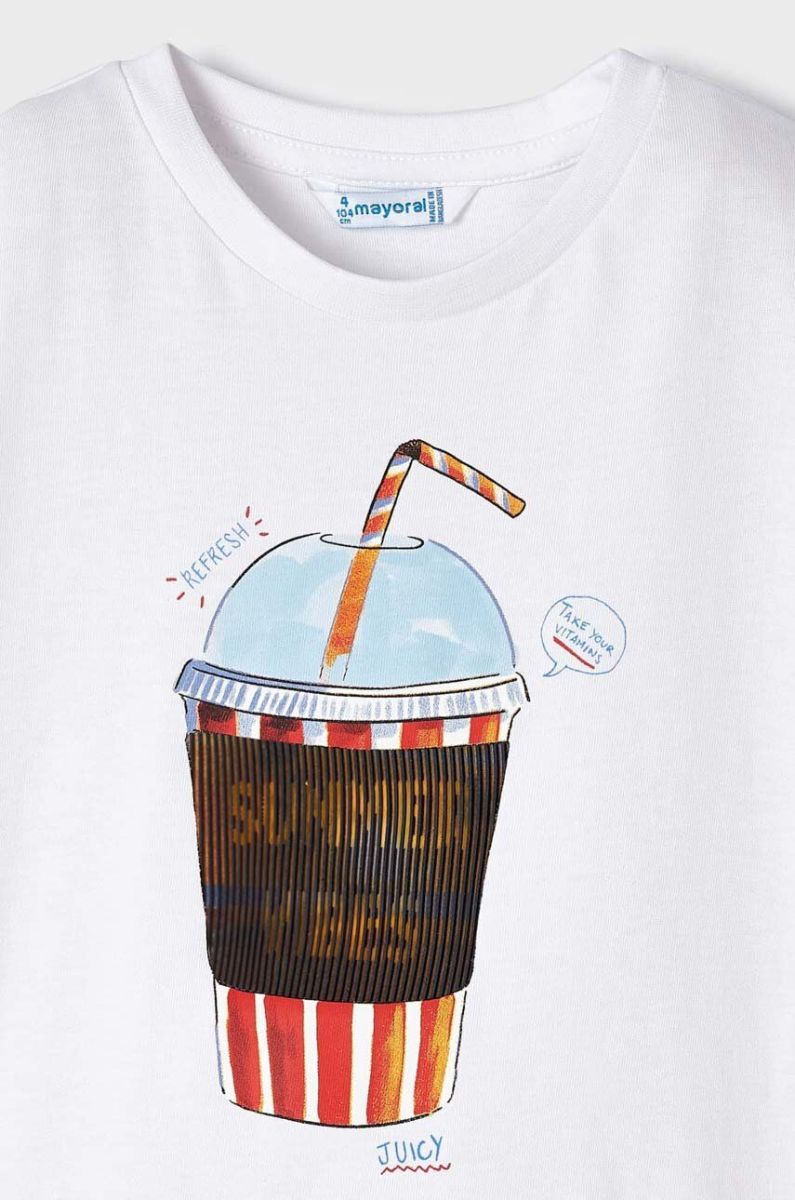 Дитяча бавовняна футболка Mayoral колір білий з принтом (2940380)