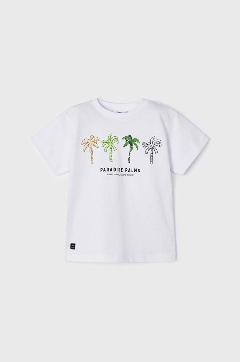Дитяча бавовняна футболка Mayoral колір білий з принтом (2940395)