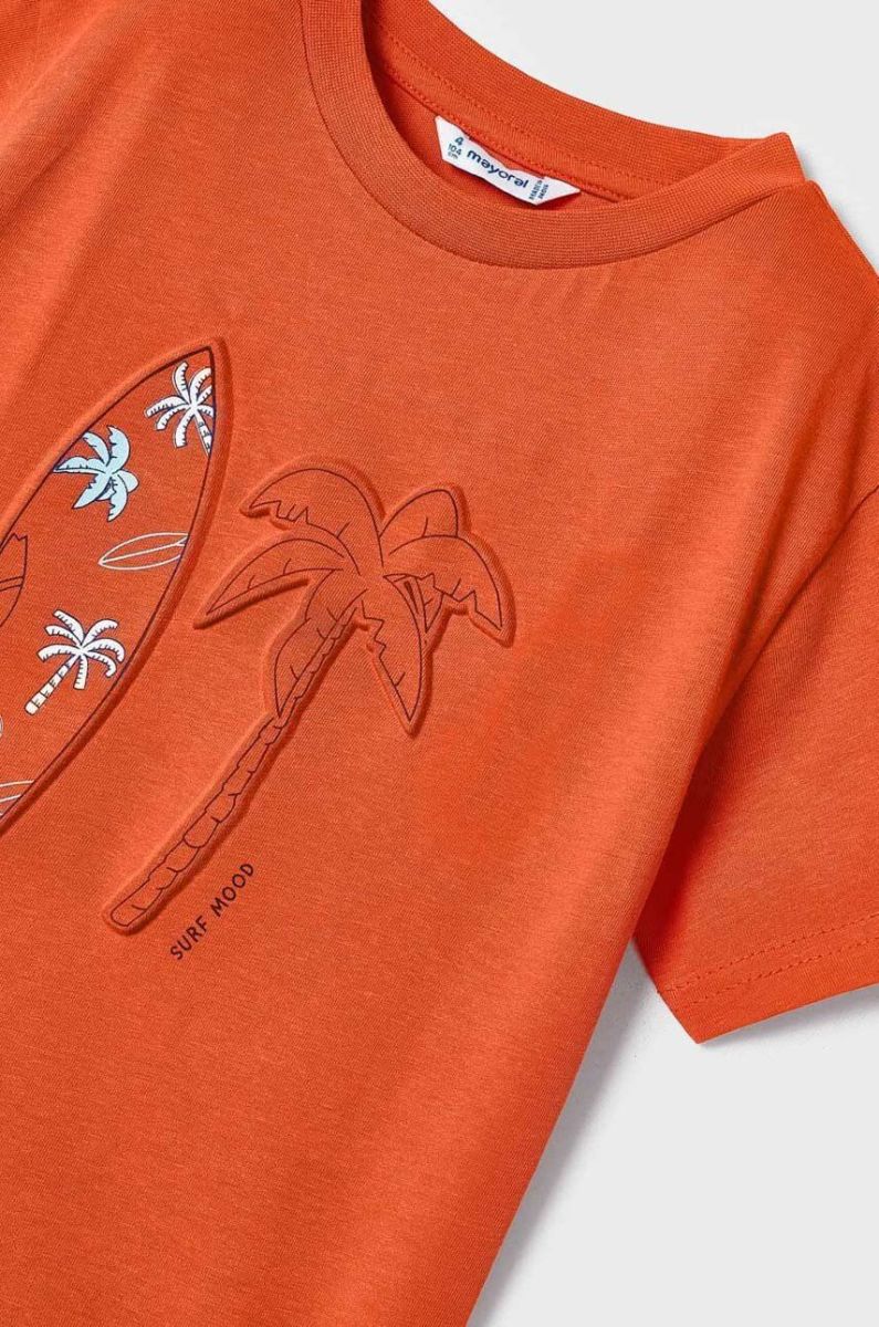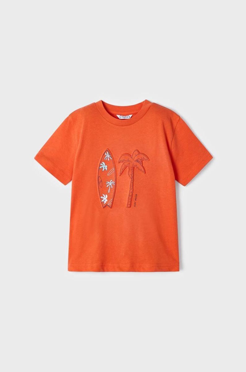 Дитяча бавовняна футболка Mayoral колір помаранчевий з принтом (2940523)