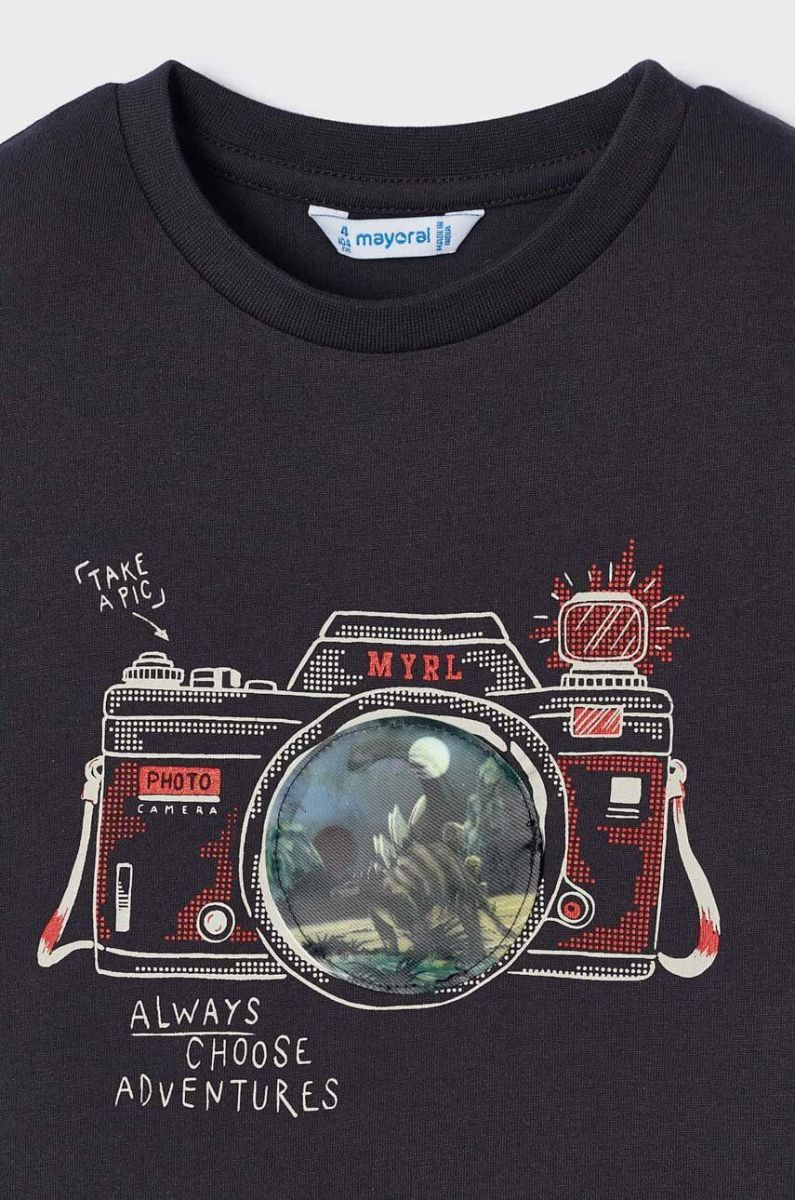 Дитяча бавовняна футболка Mayoral колір сірий з принтом (2936707)