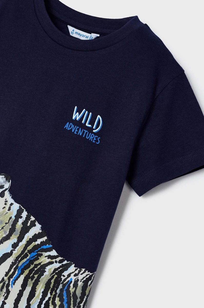 Дитяча бавовняна футболка Mayoral колір синій з принтом (2932329)