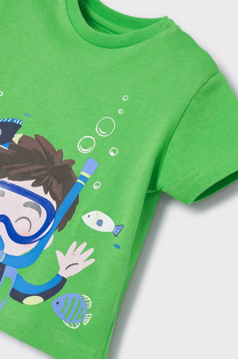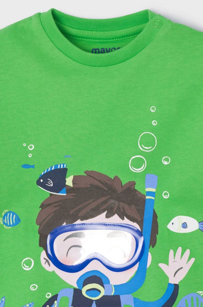 Дитяча бавовняна футболка Mayoral колір зелений з принтом (2006997)