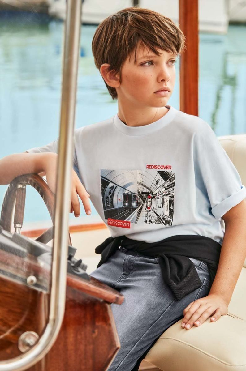 Дитяча бавовняна футболка Mayoral з принтом колір блакитний (2932359)