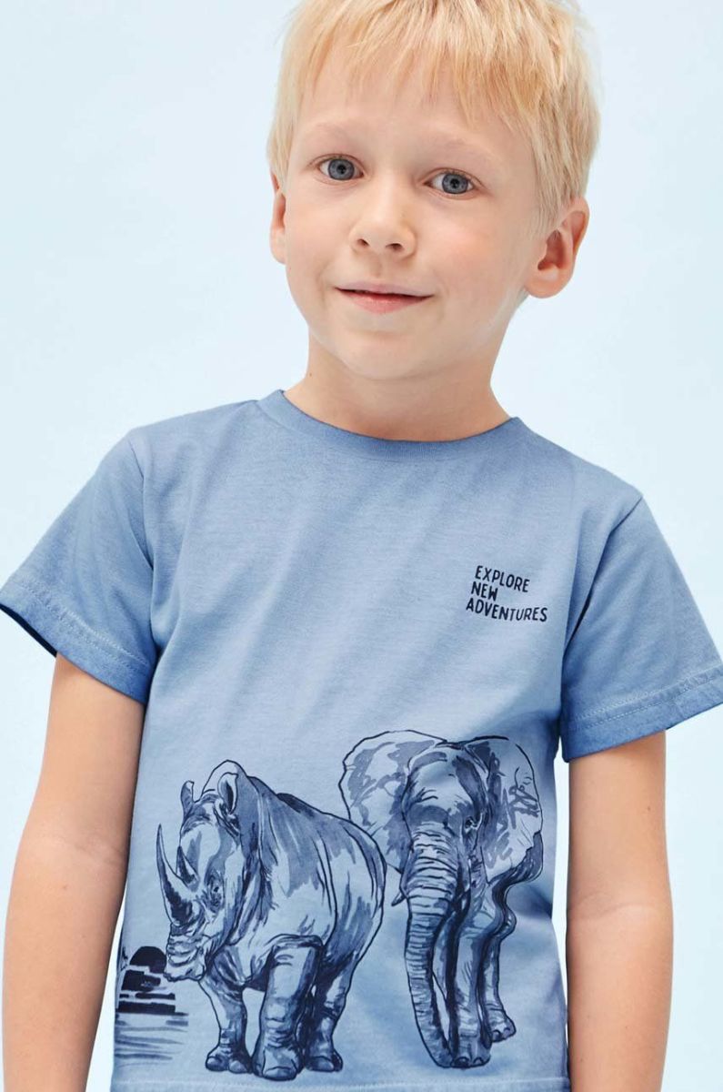 Дитяча бавовняна футболка Mayoral з принтом колір блакитний (2936795)