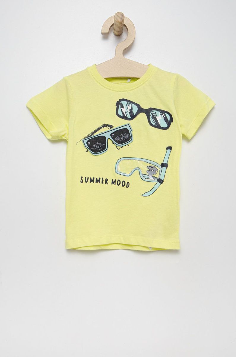 Дитяча бавовняна футболка Name it колір зелений з аплікацією