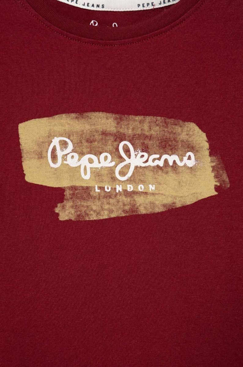 Дитяча бавовняна футболка Pepe Jeans колір бордовий з принтом (3486987)