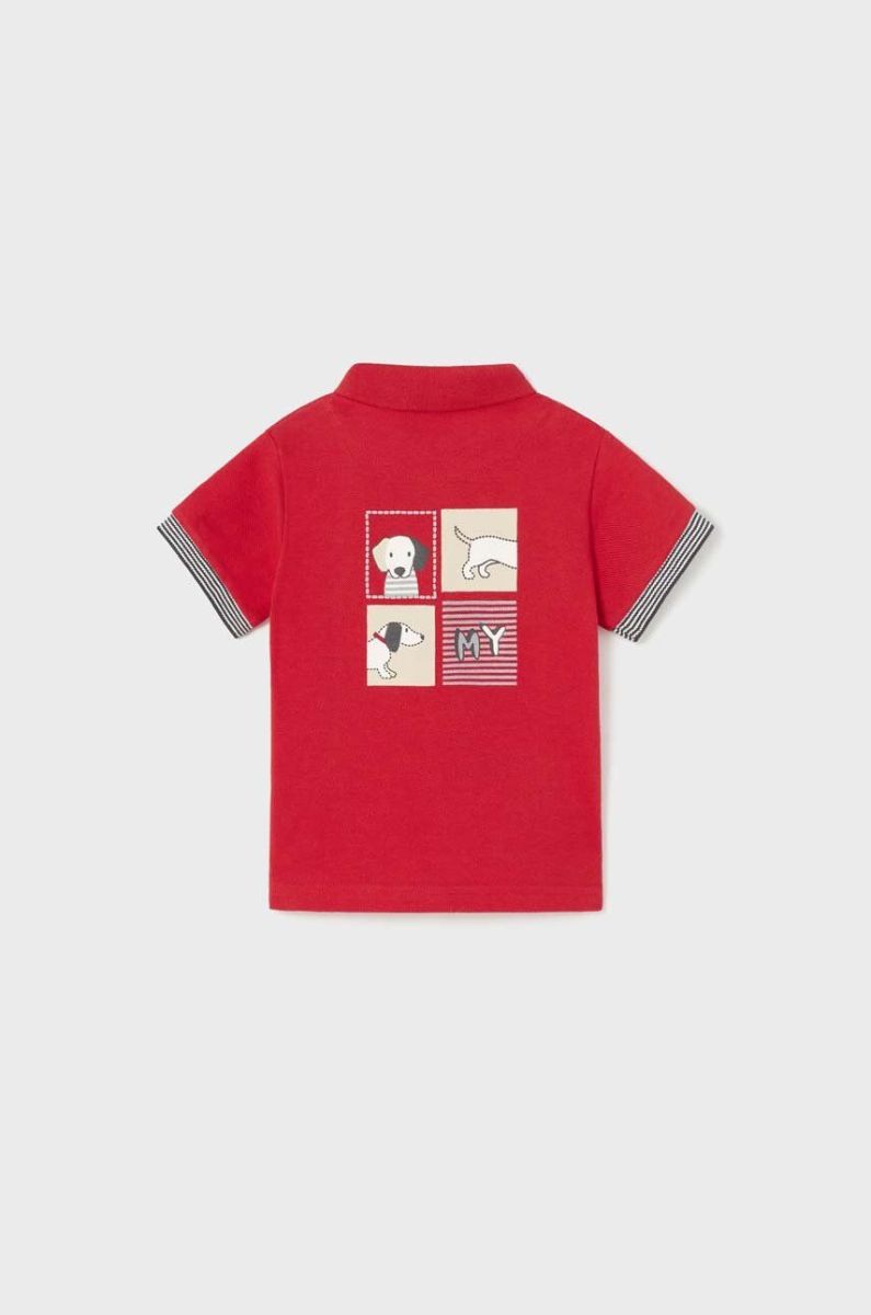Дитяча бавовняна футболка поло Mayoral колір червоний з принтом