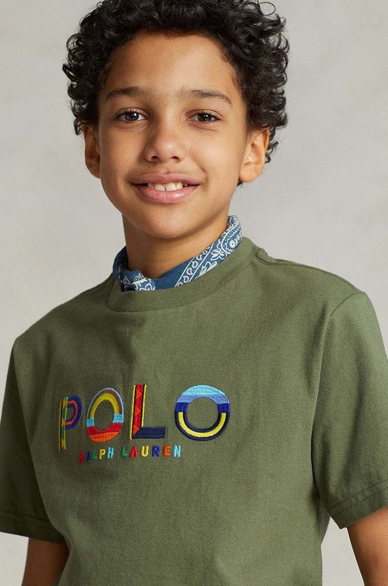 Дитяча бавовняна футболка Polo Ralph Lauren колір зелений з аплікацією (3071946)