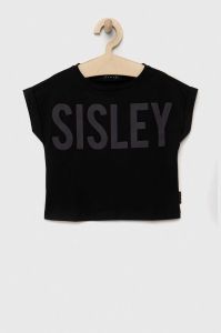 Дитяча бавовняна футболка Sisley колір чорний (3248992)