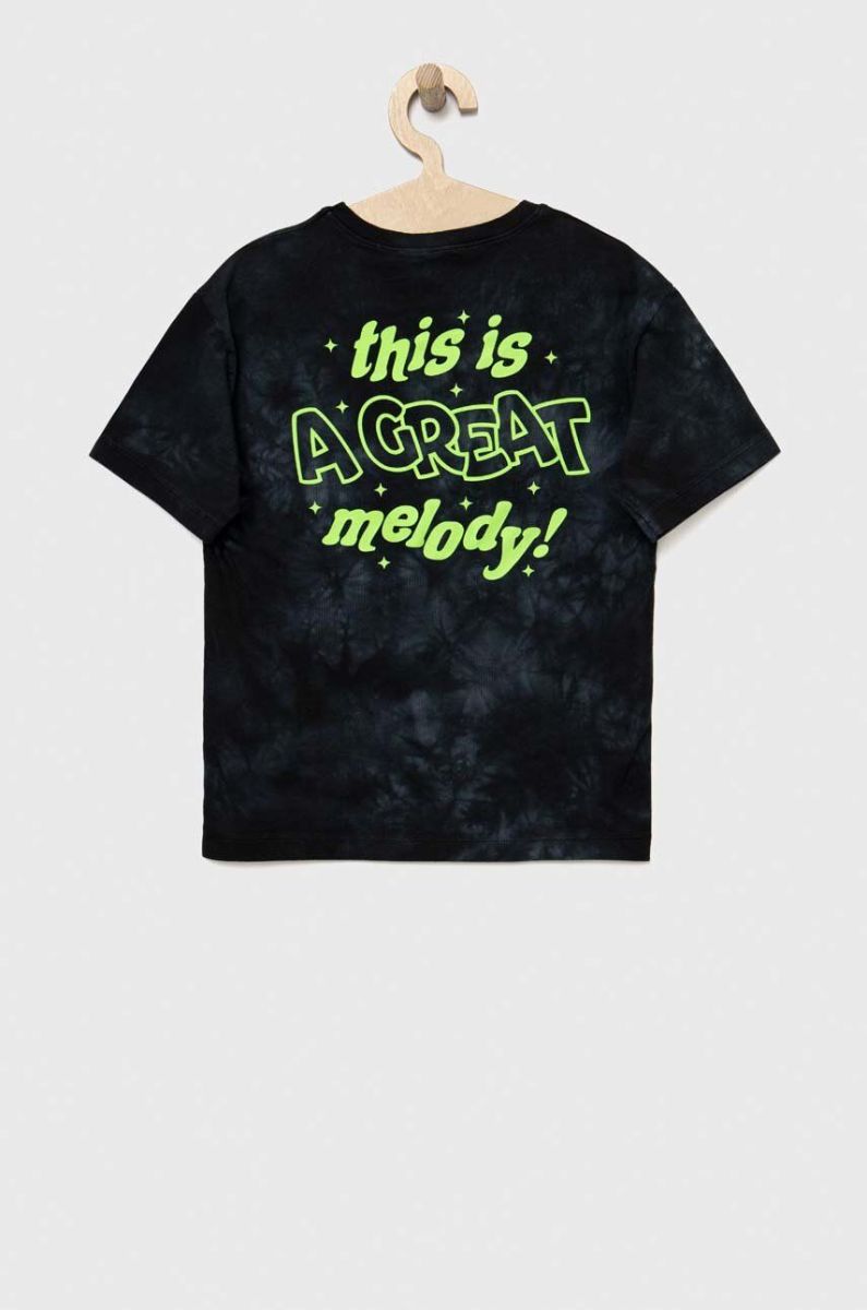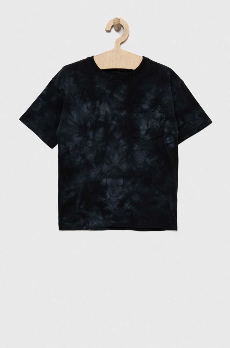 Дитяча бавовняна футболка Sisley колір чорний візерунок