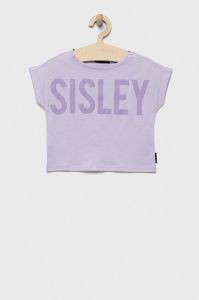 Дитяча бавовняна футболка Sisley колір фіолетовий (3249009)