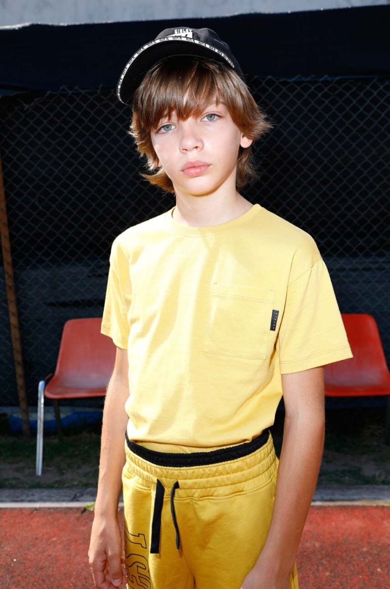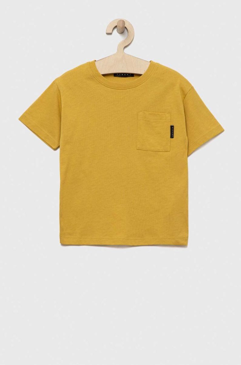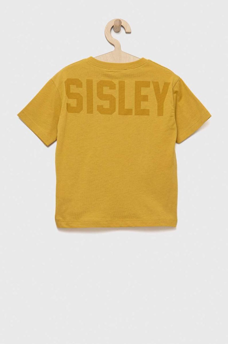 Дитяча бавовняна футболка Sisley колір жовтий з принтом