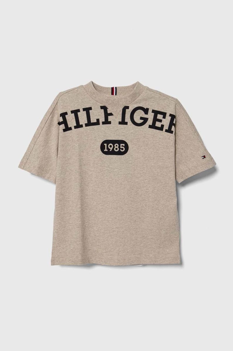 Дитяча бавовняна футболка Tommy Hilfiger колір бежевий з принтом (3508393)