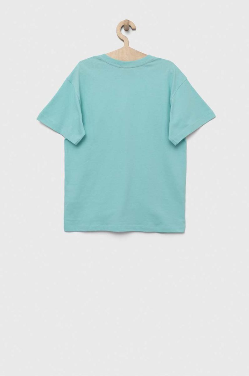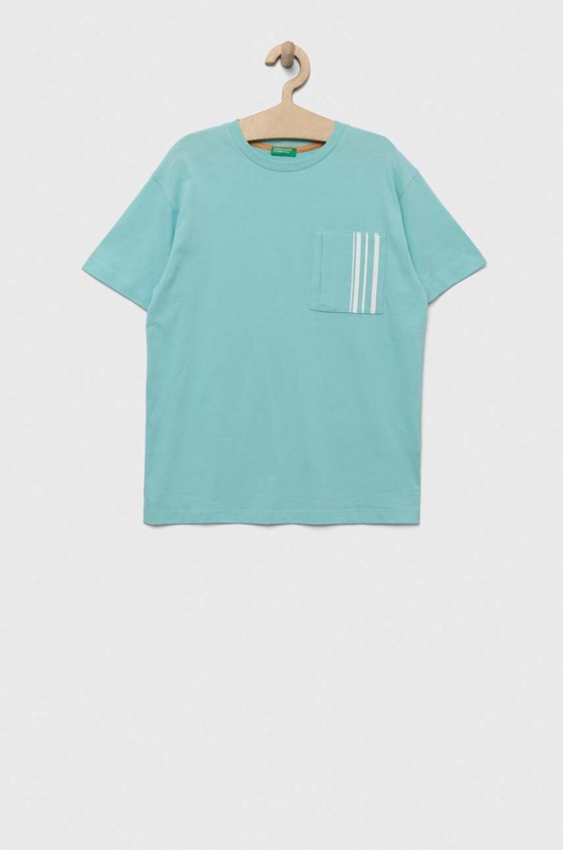 Дитяча бавовняна футболка United Colors of Benetton колір бірюзовий з принтом (3280054)