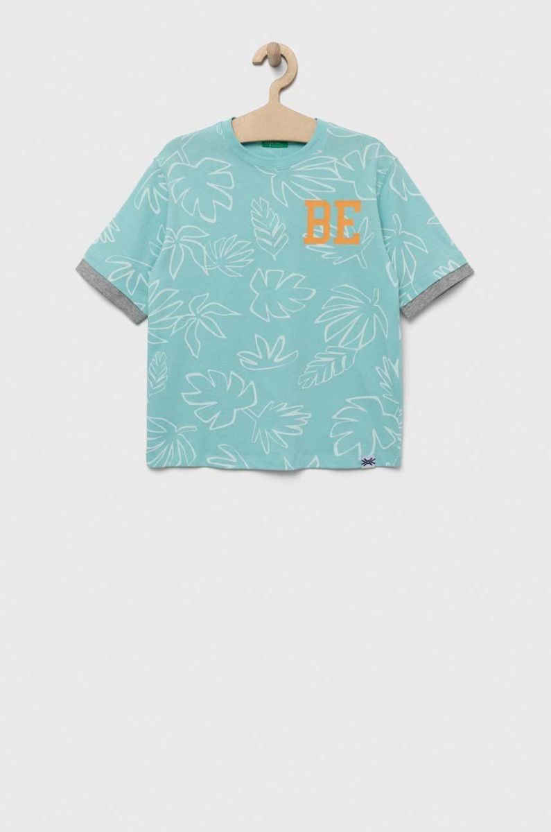 Дитяча бавовняна футболка United Colors of Benetton колір бірюзовий з принтом (3280107)