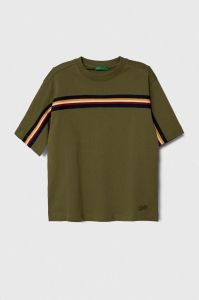 Дитяча бавовняна футболка United Colors of Benetton колір зелений з аплікацією