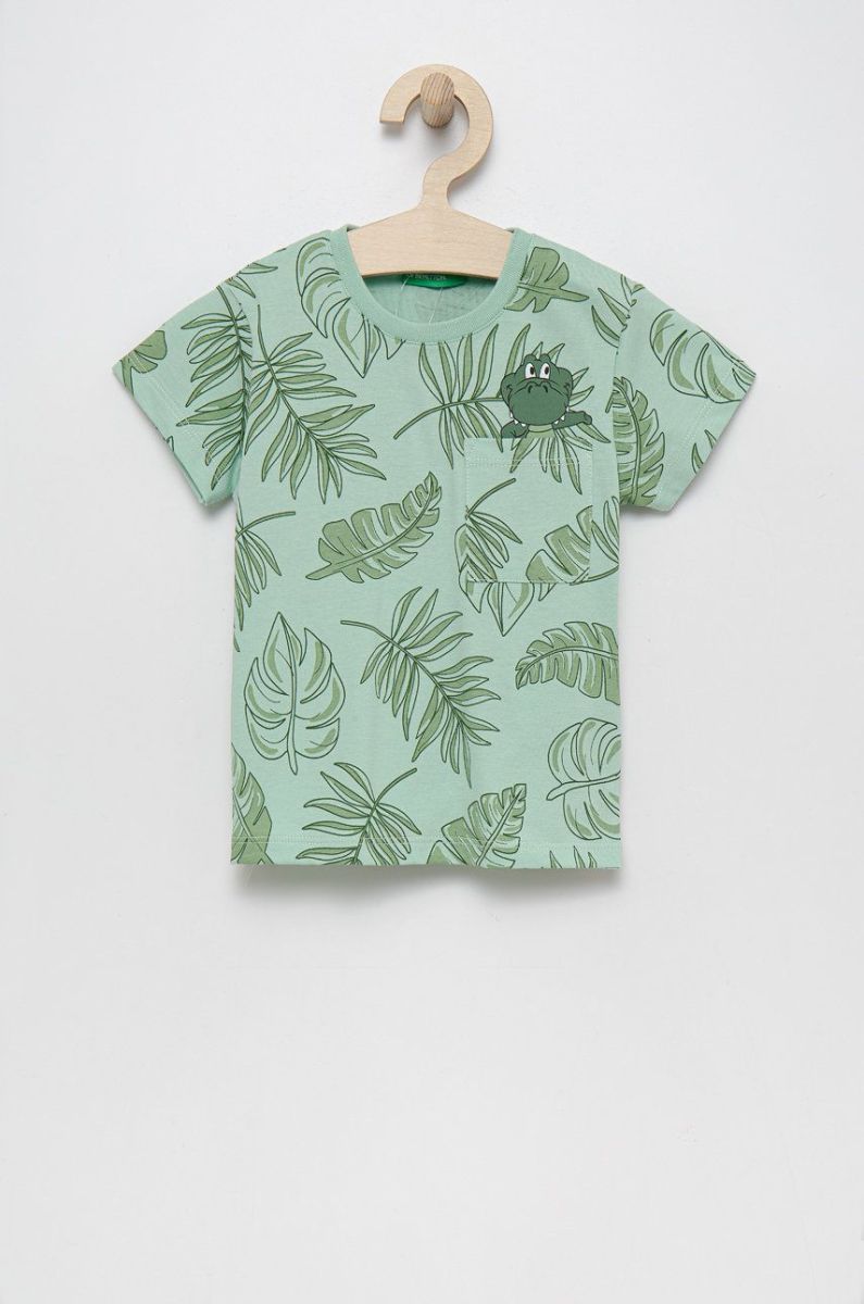 Дитяча бавовняна футболка United Colors of Benetton колір зелений з принтом (2305309)