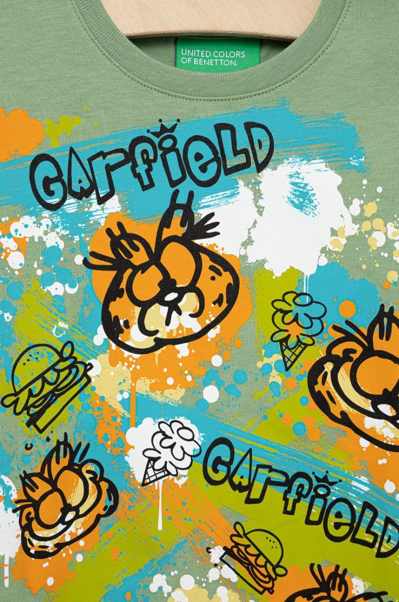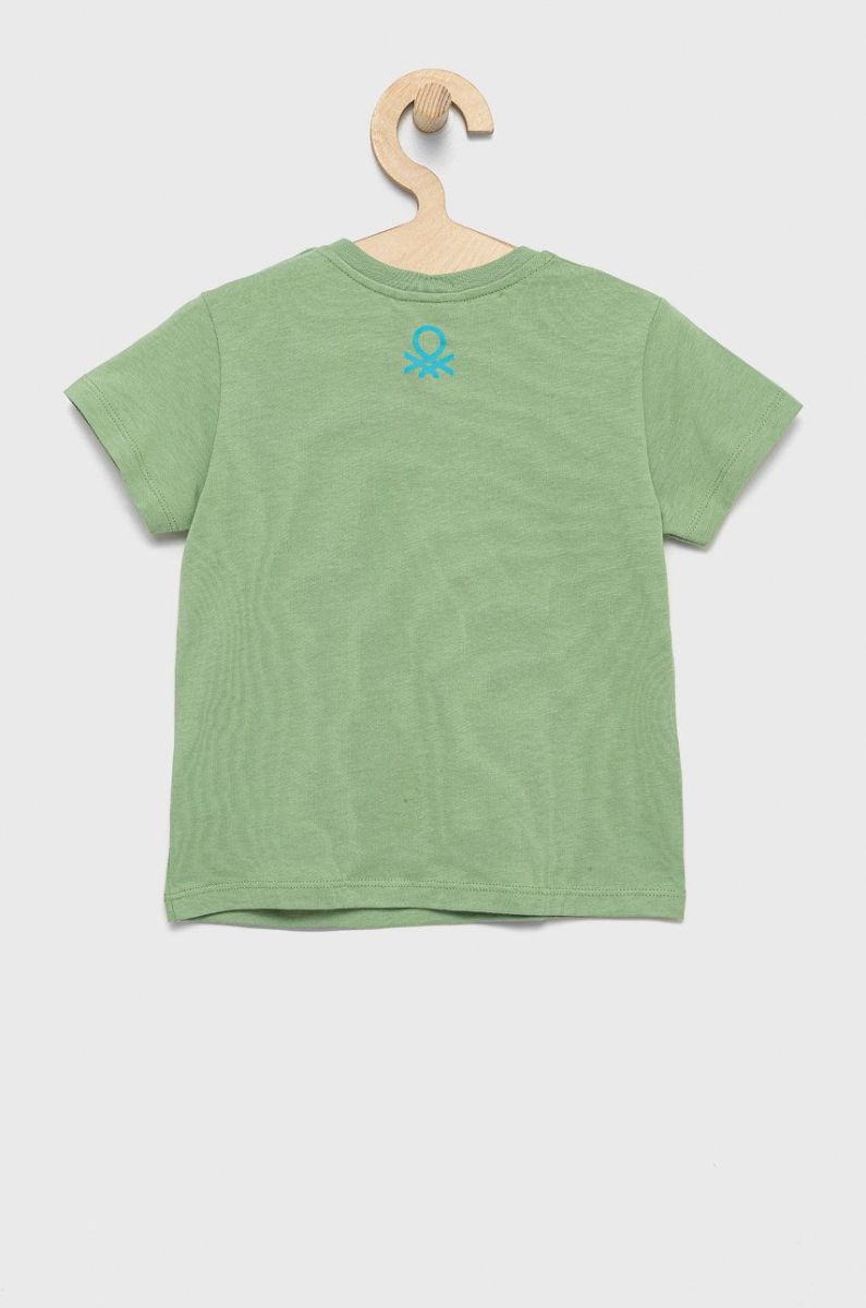 Дитяча бавовняна футболка United Colors of Benetton колір зелений з принтом (2366650)