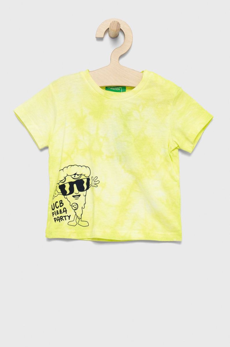 Дитяча бавовняна футболка United Colors of Benetton колір жовтий візерунок (2409330)