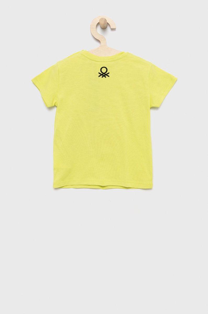 Дитяча бавовняна футболка United Colors of Benetton колір жовтий з принтом (2366656)