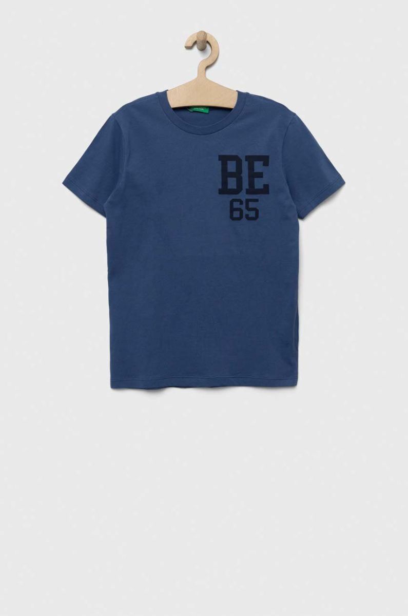 Дитяча бавовняна футболка United Colors of Benetton з принтом колір блакитний (3275744)