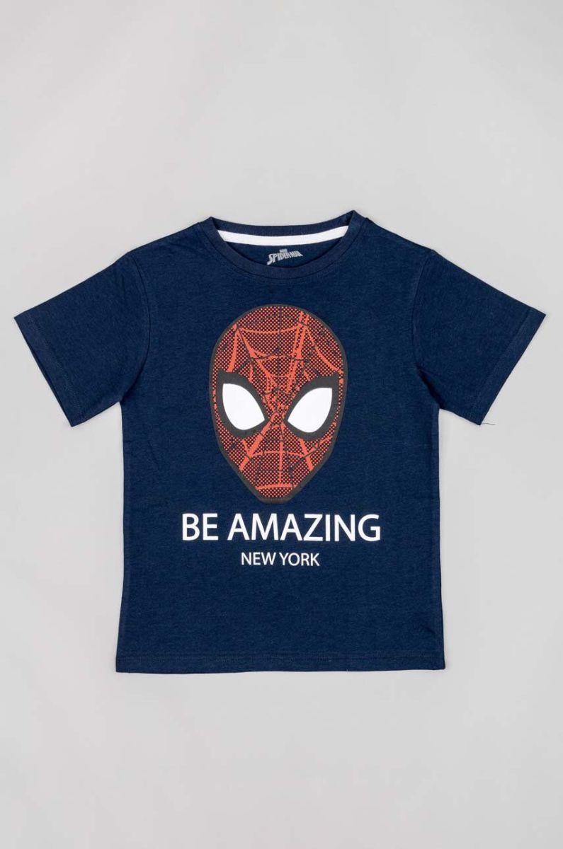 Дитяча бавовняна футболка zippy x Spiderman колір синій з принтом
