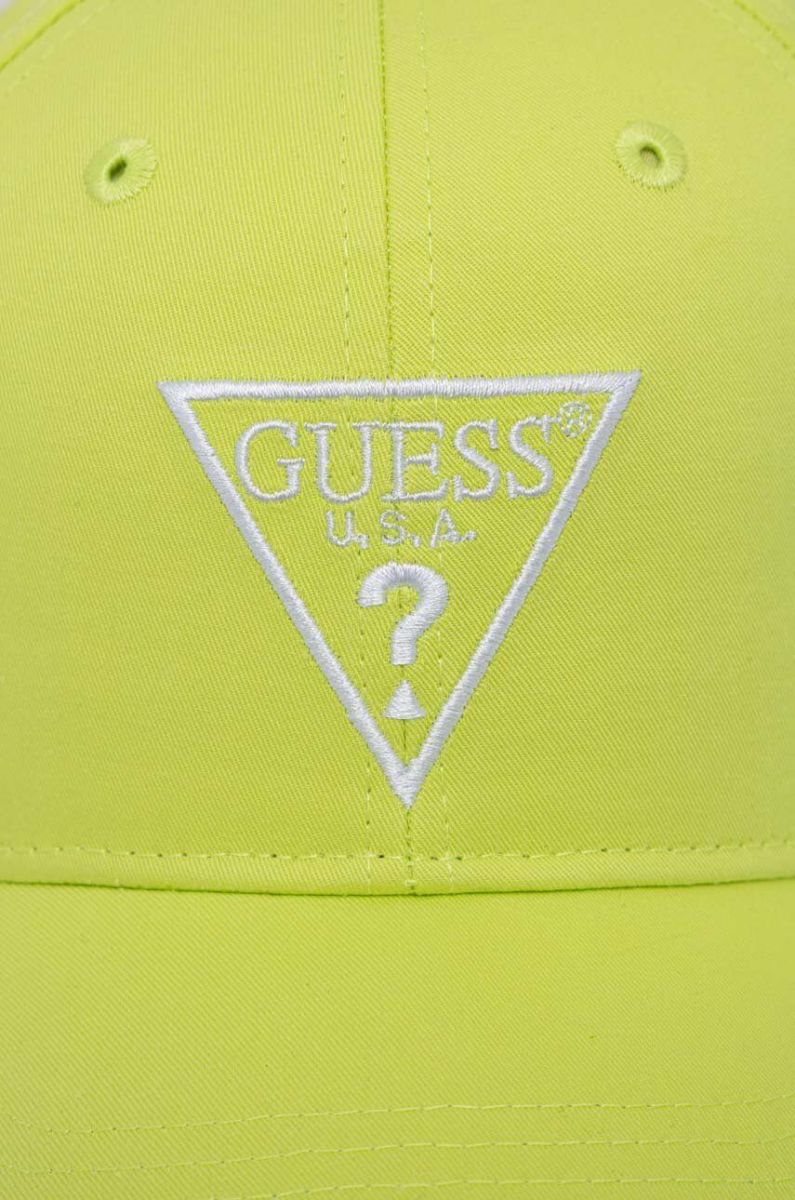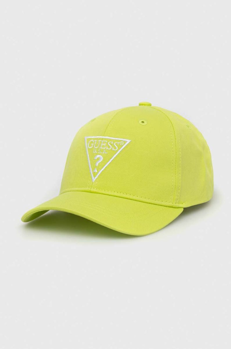 Дитяча бавовняна кепка Guess колір зелений з аплікацією