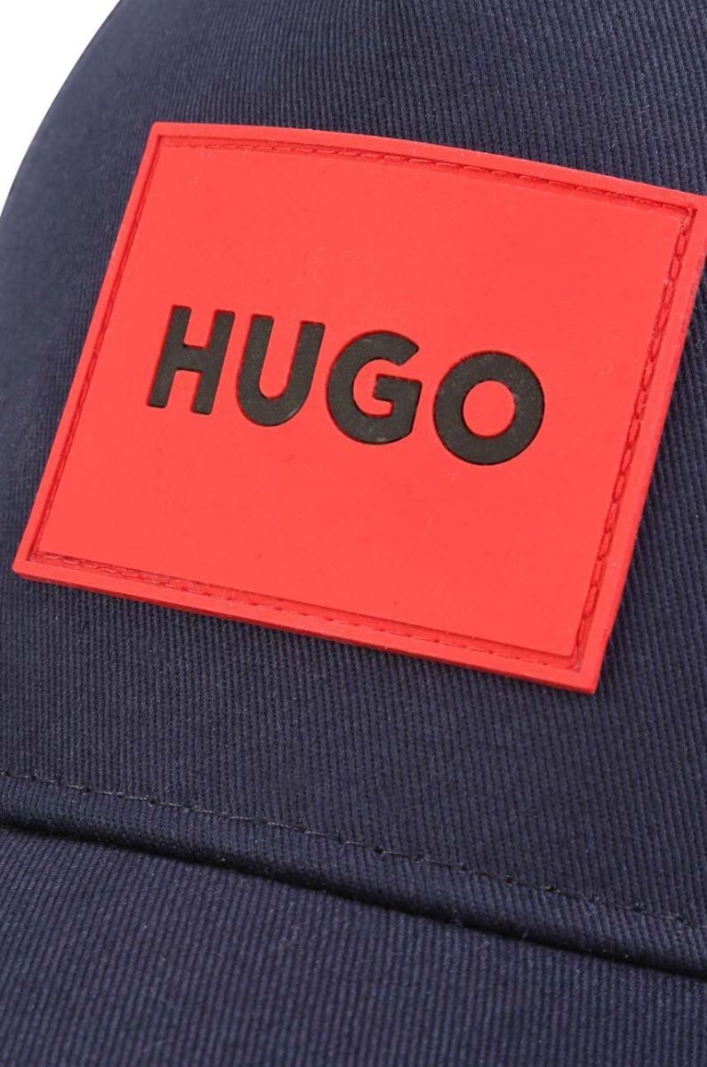 Дитяча бавовняна кепка HUGO колір синій з аплікацією