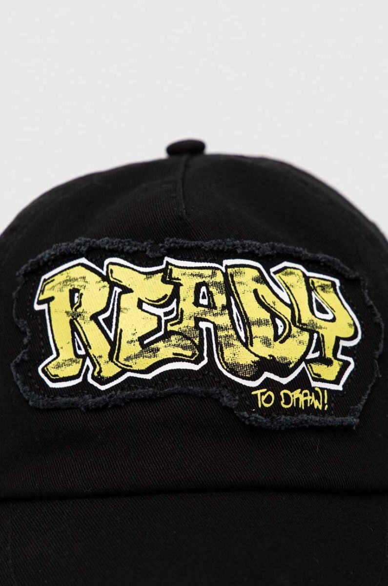 Дитяча бавовняна кепка Sisley колір чорний з принтом