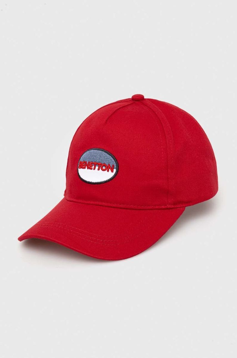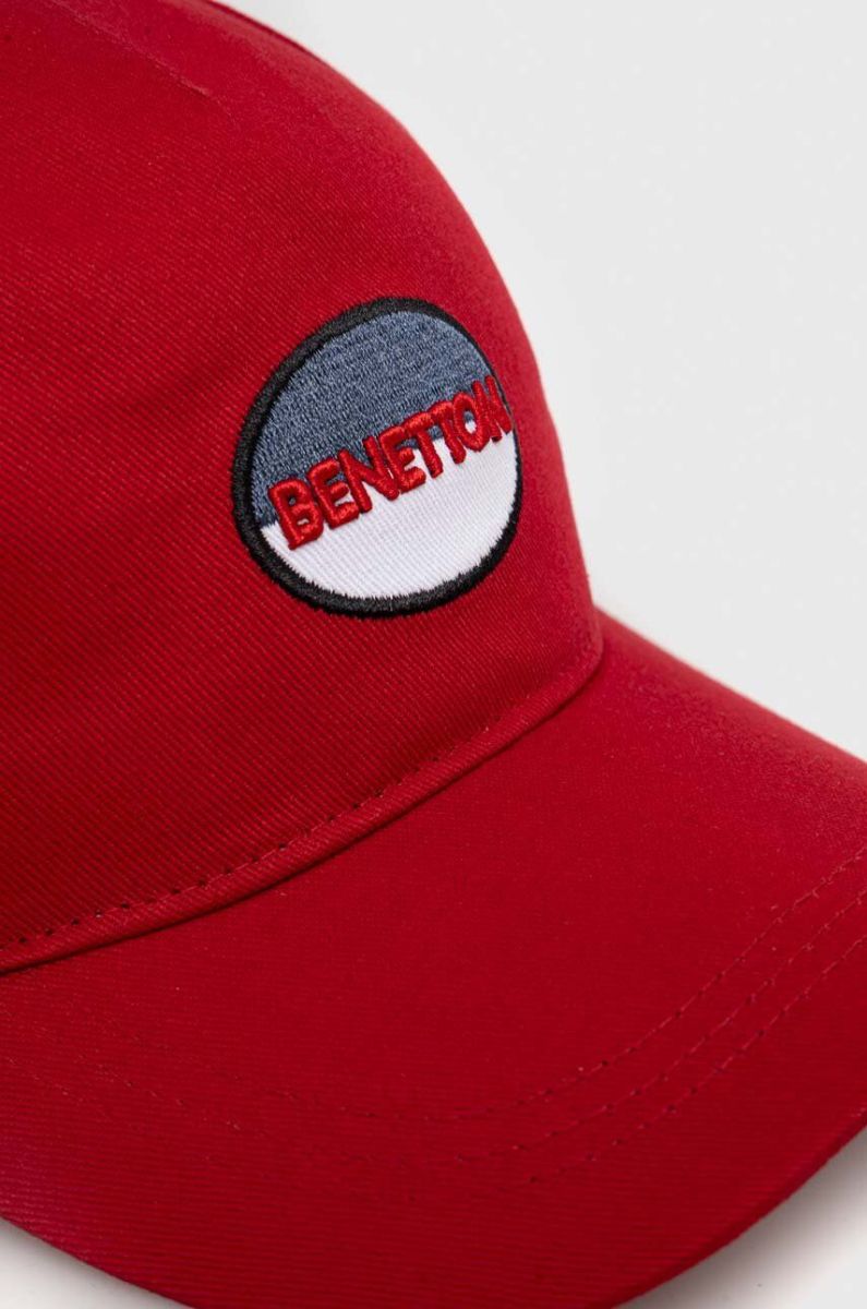 Дитяча бавовняна кепка United Colors of Benetton колір червоний з аплікацією (3550279)