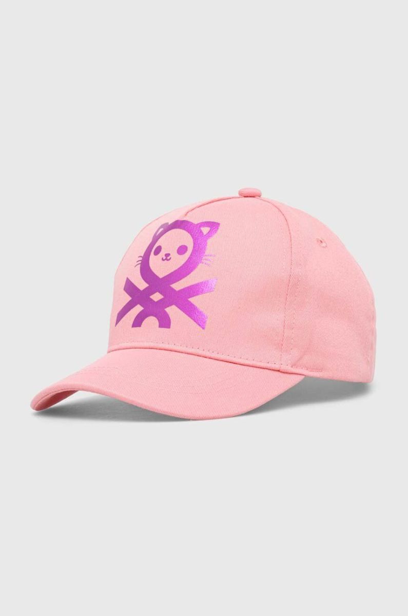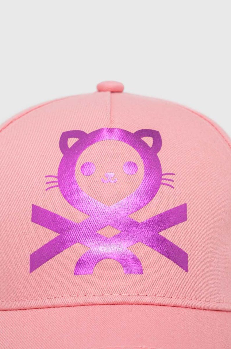 Дитяча бавовняна кепка United Colors of Benetton колір рожевий з принтом (3466092)