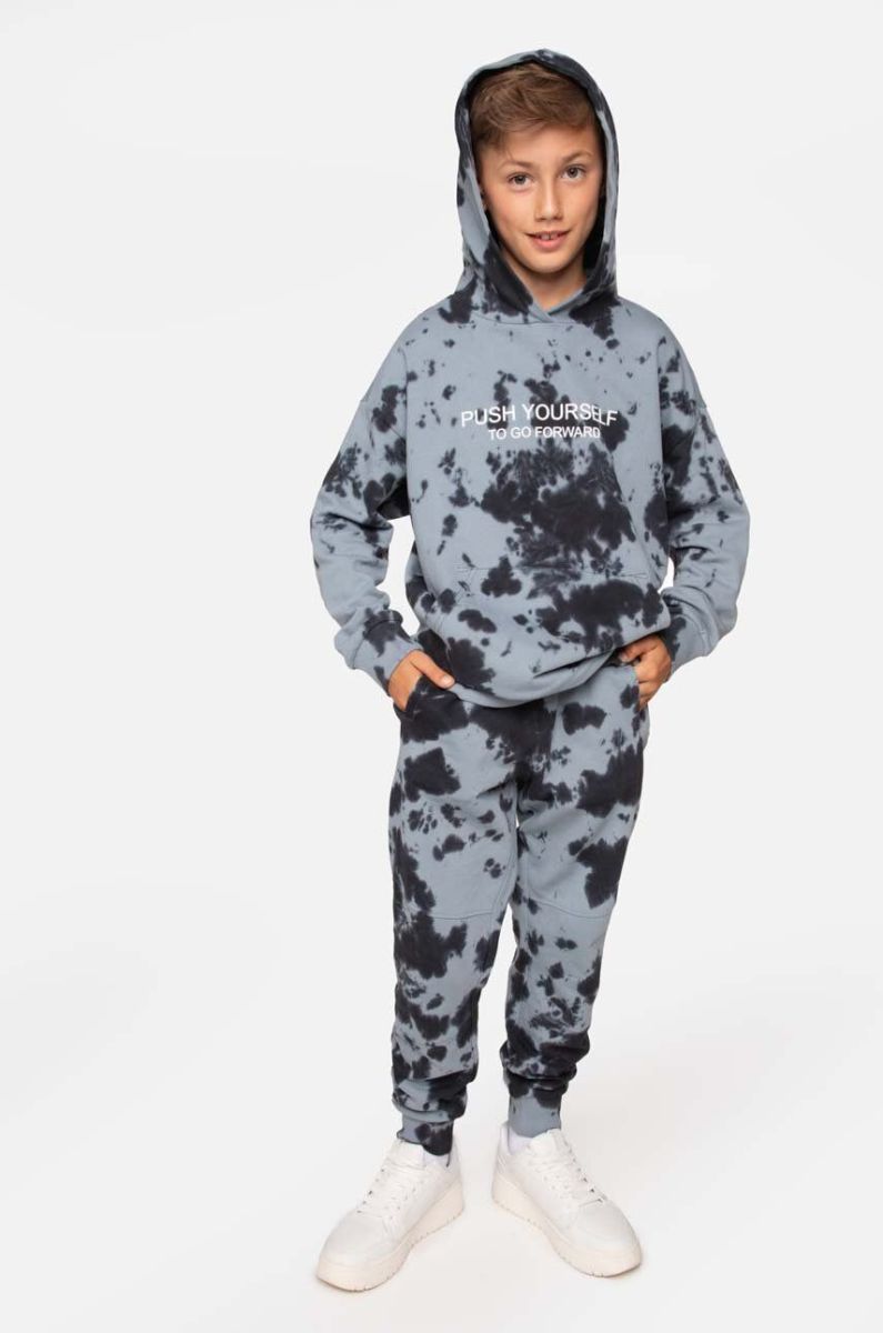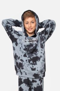 Дитяча бавовняна кофта Coccodrillo колір сірий з капюшоном візерунок